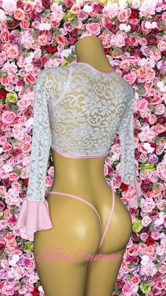 Pink-Bell Sleeve Two Piece